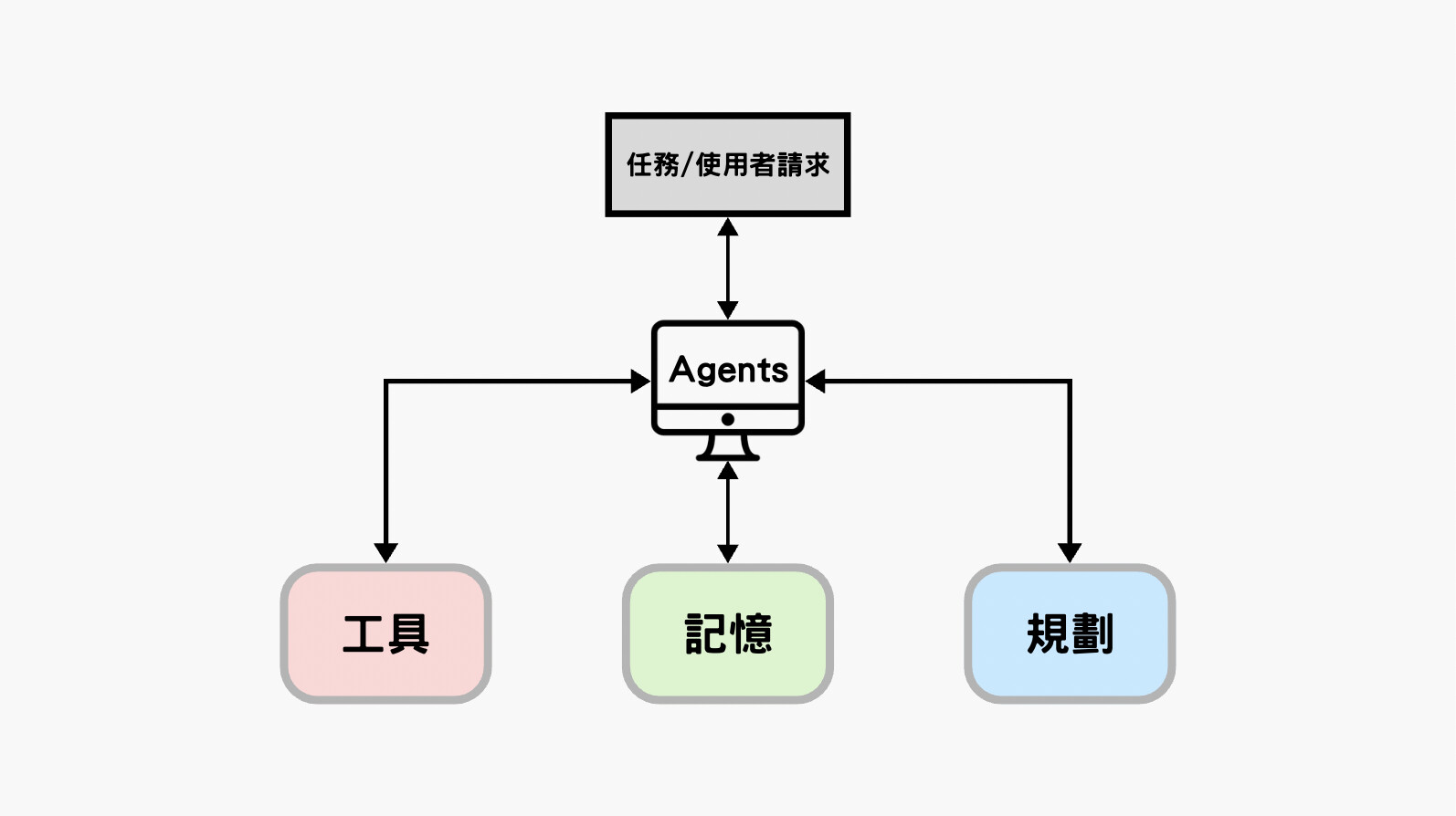代理人比 LLM 更進一步,整合了「任務規劃」、「記憶系統」、「工具使用」等能力。