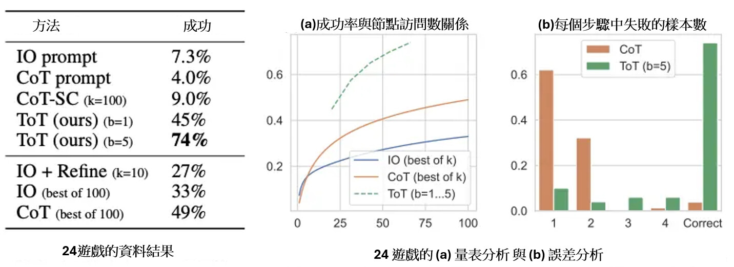 數據顯示使用ToT的成功率遠遠高於CoT
