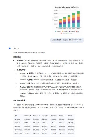 圖表理解:具備分析圖表的能力,可以檢測並總結圖表中的數據點。