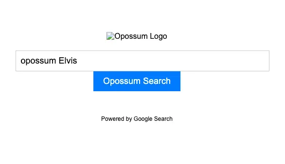 Create a web app called "Opossum Search" with the following criteria: 1. Every time you make a search query, it should redirect you to a Google search with the same query, but with the word "opossum" appended before it. 2. It should be visually similar to Google search, 3. Instead of the Google logo, it should have a picture of an opossum from the internet. 4. It should be a single html file, no separate js or css files. 5. It should say "Powered by Google search" in the footer.
