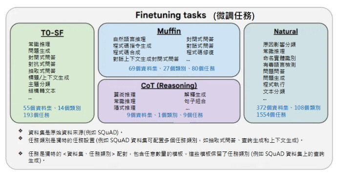 使用 1.8K 個任務以指令形式對模型進行微調,包括使用或不使用示例,以及使用或不使用思維鏈 (CoT) 數據。