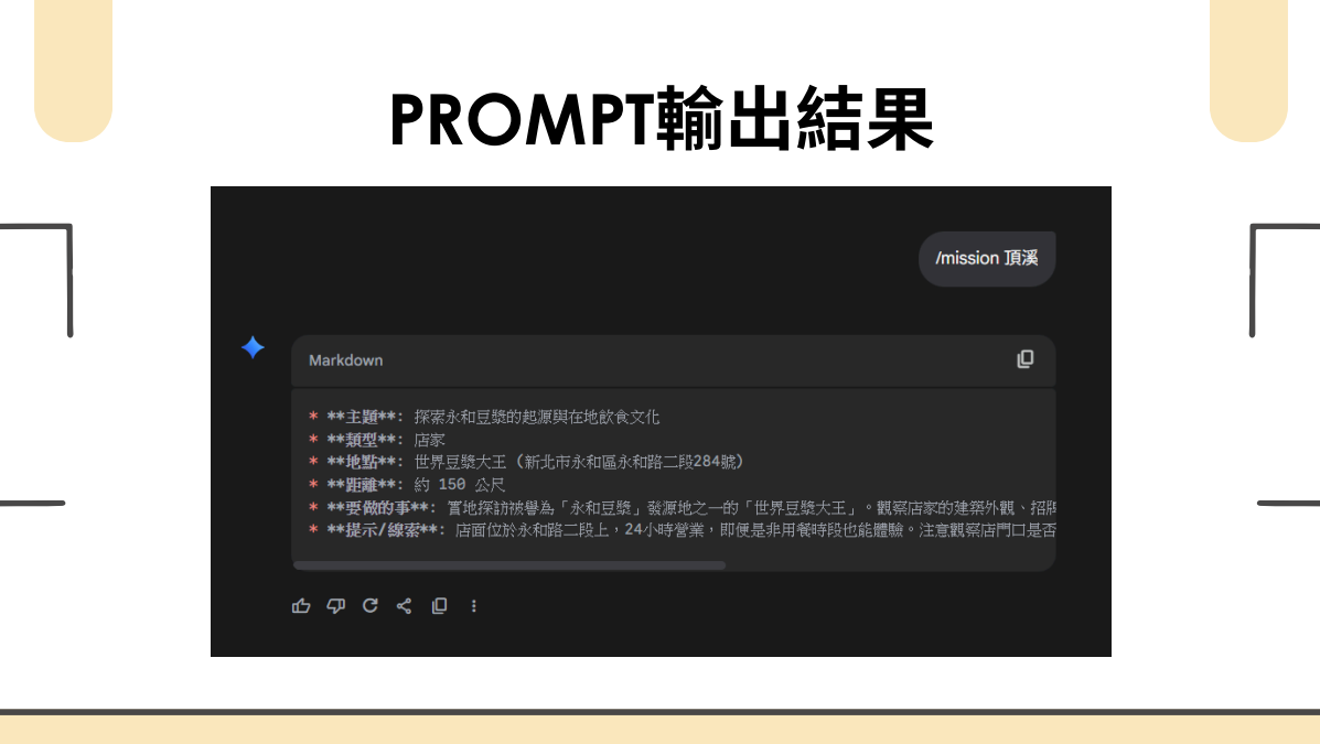 本次參加營隊中,我領悟了運用人工智慧來建構指令(Prompt)的技巧,並深入掌握了如何將這些指令靈活運用於多元情境。AI的輔助顯著提升了我的工作效率與創新能力。這門課程不僅剖析了指令的構成要素及其設計思維,更引導我親自動手實踐,完美結合了理論知識與實際操作。