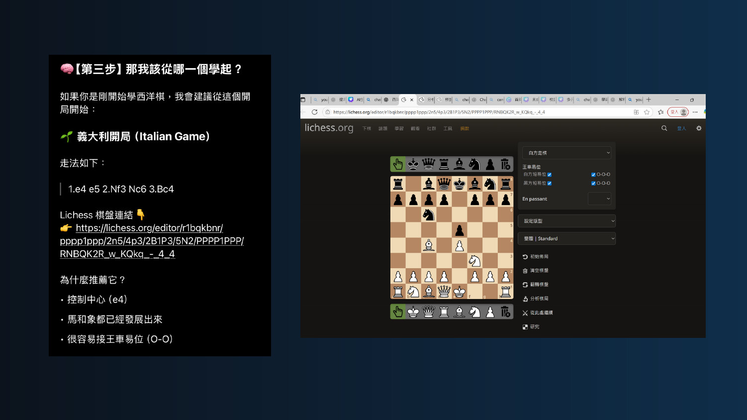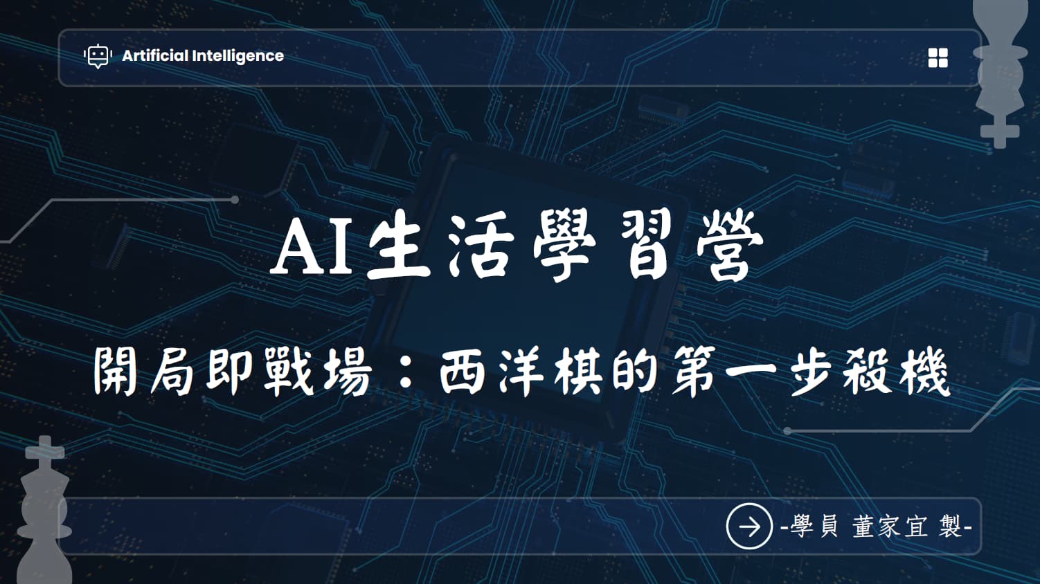 你知道嗎?下西洋棋的時候,第一步就可能決定勝負!「開局」當成主題,結合 AI 工具,來一場策略與科技的對決。從接觸西洋棋到設計提示詞,發現只要下對「指令」,就像下對棋步一樣,AI 也能成為最強助攻手。讓我們一起看看,怎麼用 AI 打造完美開局吧!