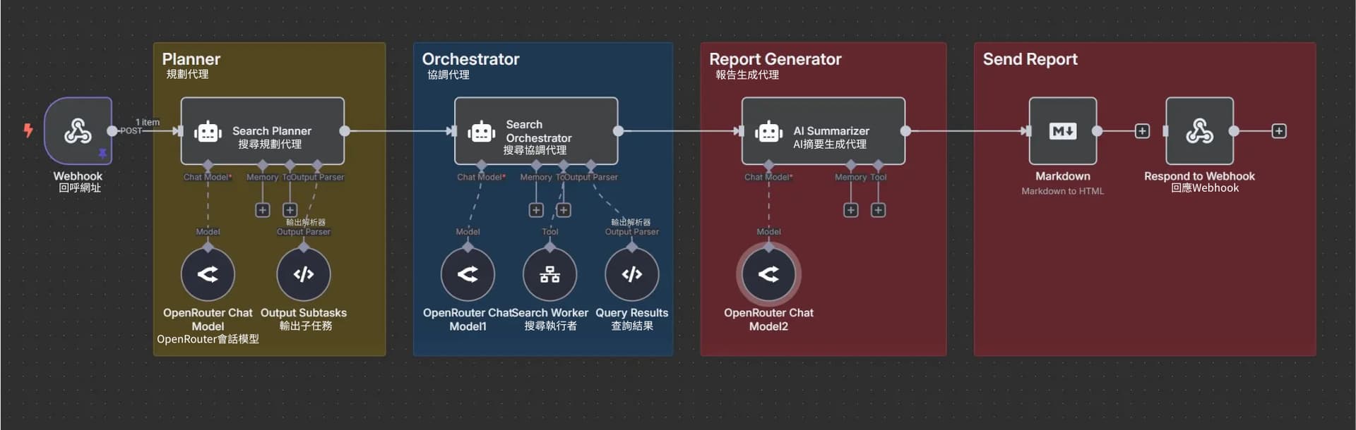 - 使用 n8n 建立整體的智能體工作流程。