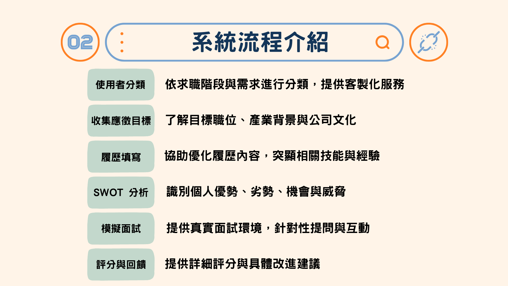 * **跨模組整合能力**:你能將履歷填寫、SWOT、自動化面試這三者串接,顯示你具備**系統性思考與整合執行力**。
