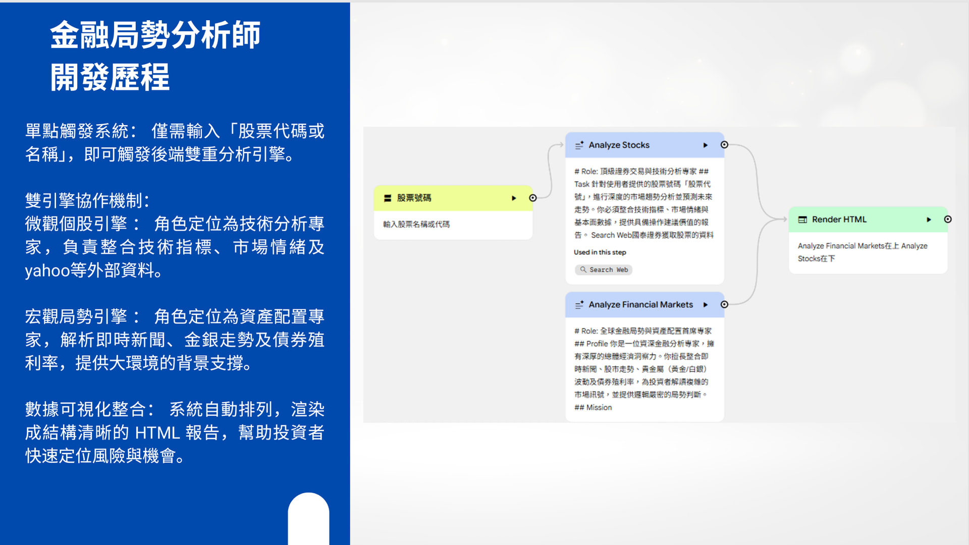 解決方案:建立一個能整合技術指標與基本面新聞的AI,針對特定個股提供「去情緒化」的客觀