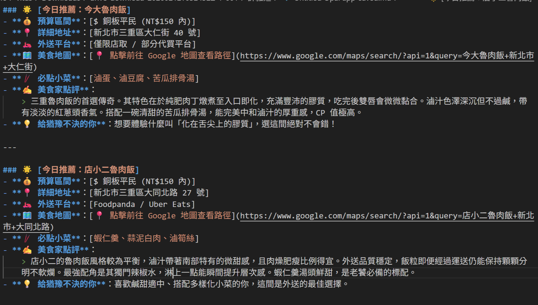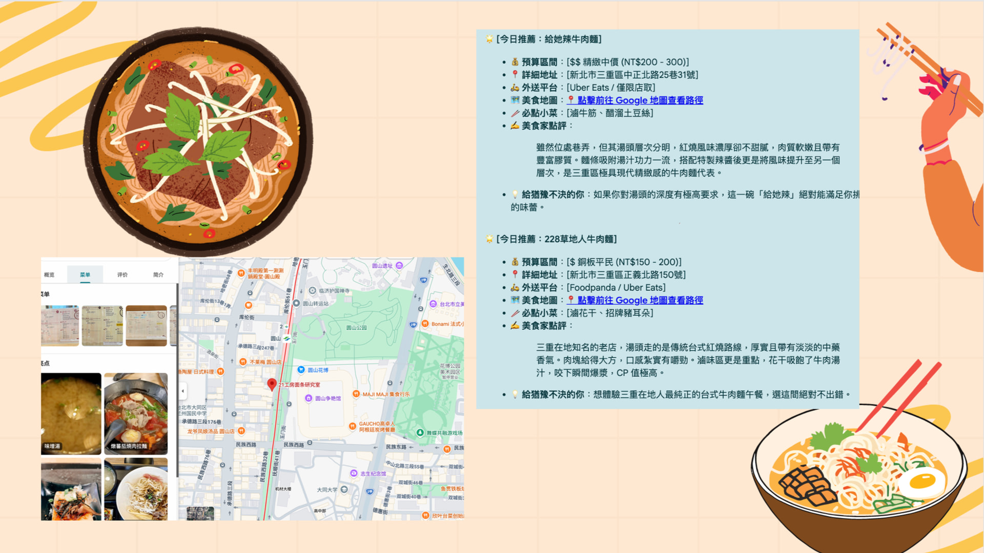 1.選擇障礙:每天中午、每次聚餐都要問「等⼀下要吃什麼?」所以決定系統化整理。